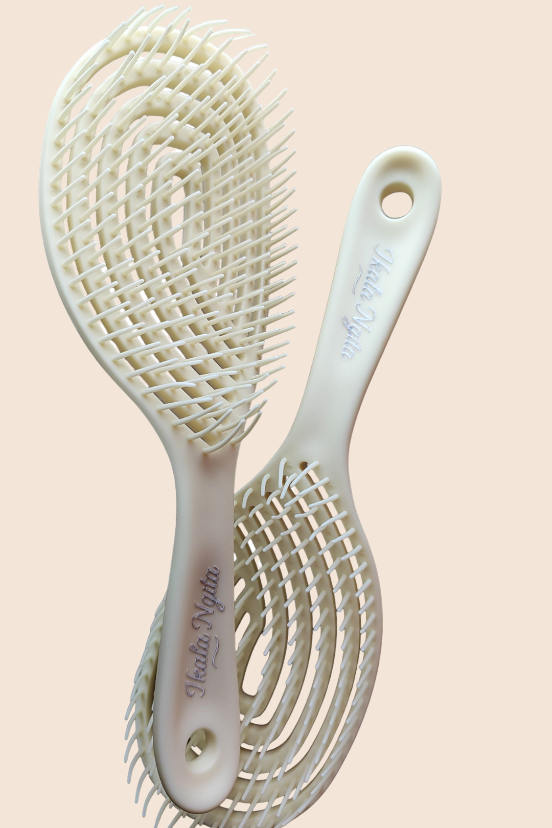 Cette brosse démêlante couleur crème a été sélectionnée avec soin par Ikala Ngita pour vous offrir un accessoire à la fois pratique et respectueux de vos cheveux.