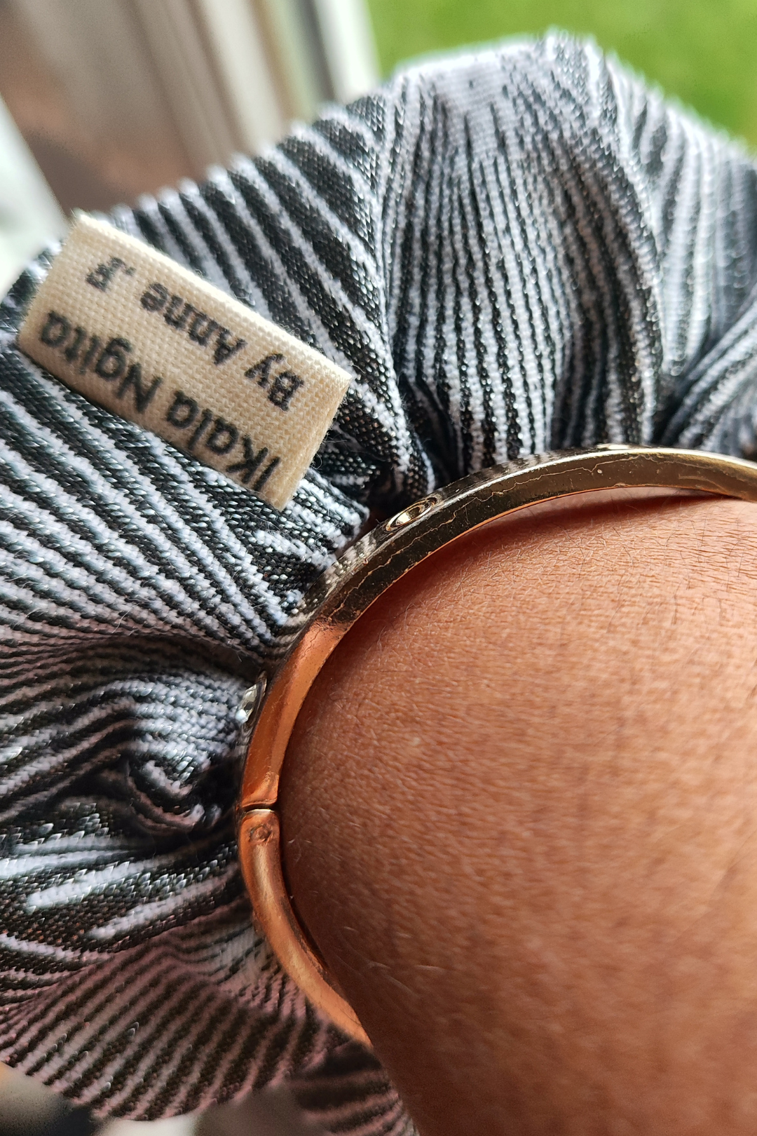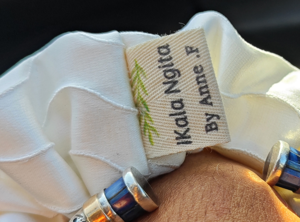 Chaque chouchou Ikala Ngita est confectionné à la main en France à partir de tissus revalorisés issus d’ateliers de couture. Satinés, texturés ou délicatement brodés, ces tissus retrouvent une nouvelle vie entre les mains de nos artisanes.